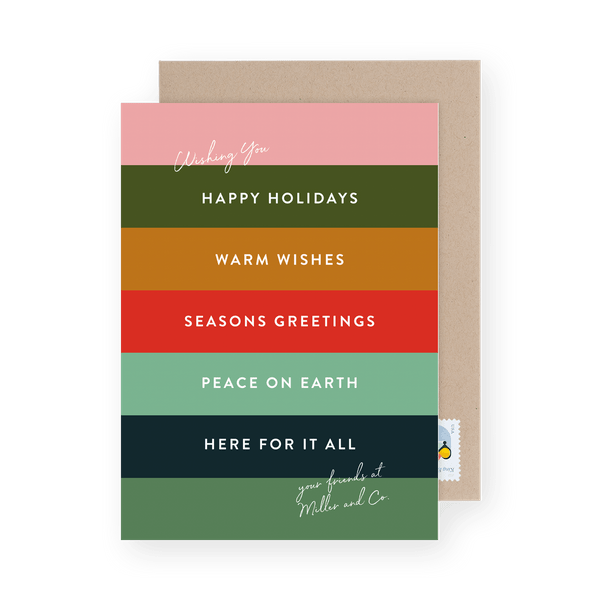 Speaking of business holiday cards, your clients aren’t the only people who help make your small business run on the daily. In fact, some of the most valuable assets your small business has are your employees. Especially in the current employee market, retaining valuable talent is likely a top priority. So don’t forget to mail them a lovely holiday card as well! If you’re on the fence about sending your employees their own holiday cards — don’t be. Sending out company Christmas cards to your employees will be the single easiest way to boost morale and that’s not something to take for granted.
